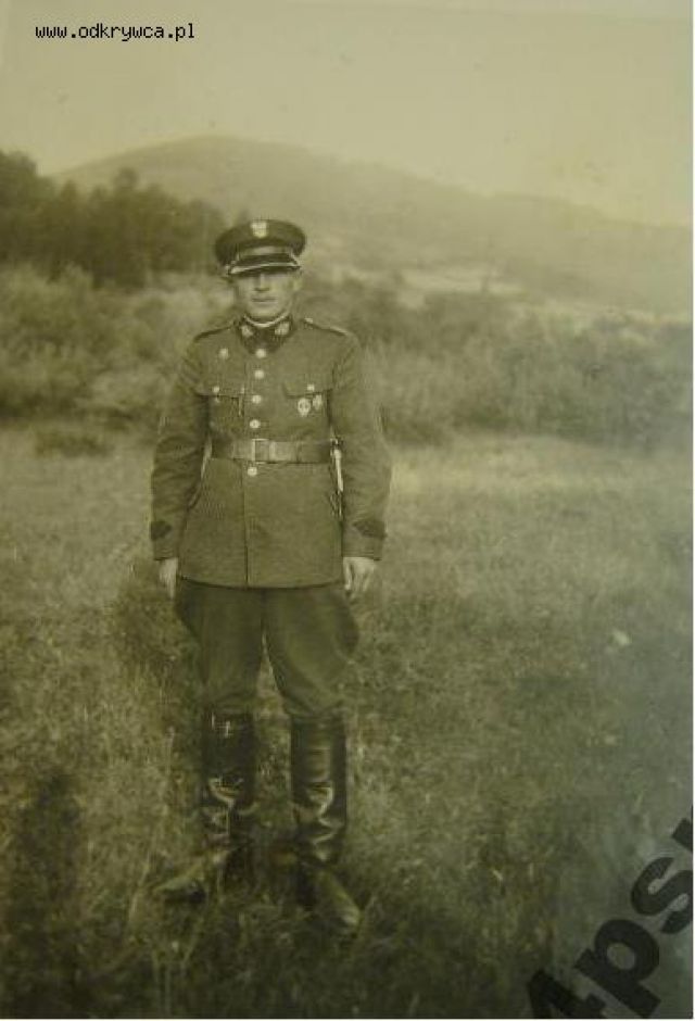Tak wg mojej znajomości ematu", jest to strażnik celny, tj niższy funkcjonariusz ( numer instalacyjny" na patce/łapce kolnierza kurtki, mundur z sukna zielonego i patka ciemnozielona - na fotografii zbyt jasna ale to zapewne dzieło" lokalnego krawca i jego możliwości) i to służący stale konno, bowiem na lewym ramieniu ma akselbanty (tak w przepisie, po polsku sznury naramienne)barwy ciemnozielonej; dla uścislenia numery instalacyjne" nosili tylko funkcjonariusze niżsi (strażni celny, starszy strażnik celny, starszy strażnik celny, przodownik SC i starszy przodownik SC); byc może uda się ustalić nazwisko strażnika z fotografii;