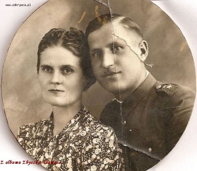 ZA Napisano 1 Czerwiec 2010 Napisano 1 Czerwiec 2010 Prof. Wysocki w swojej monografii - oficerów rezerwy - potraktował dość pobieżnie. Porucznik(awans w 1937r.) Bronisław Sałuda został zmobilizowany 23 marca 1939r. i od tego czasu wraz ze swoim 7 batalionem, III kompanii, 10 PP, 26 DP Armii POZNAŃ" zajmował pozycję w okolicy Żnina. Jego bezpośrednim dowódcą był mjr Roszkowski, który zginął tego samega dnia co mój dziadek. unok" napisał prawdę o tym pociągu, ponieważ 31 sierpnia mój dziadek wracał z przepustki i niewiele brakowało a wojnę zaczął by w Łowiczu.Dziękuję wszystkim za poszukiwania i otrzymane dane.Pozdrawiam.PSDołączam fotografię Por. B. Sałudy z żoną. Wykonana została na przełomie maja i czerwca 1939r.