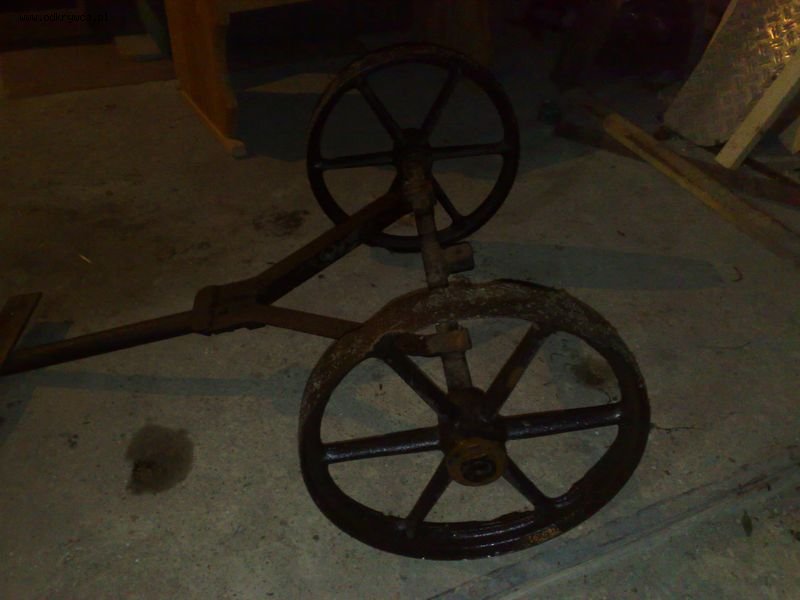 leonsjo Napisano 23 Lipiec 2009 Autor Napisano 23 Lipiec 2009 Witam, przedmiot wydobyty przy rzece Odra(opolszczyzna).Rozstaw pomiędzy kołami około 65cm. Koła wyglądają na odlew. Dziękuje za ewentualną pomoc w identyfikacji.