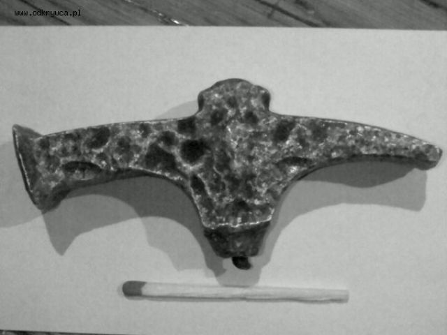 Witam wykopałem cos w rodzaju małego młoteczka, ten na zdjęciu juz jest po odrdzewianiu. Wielkość dla porównania jest przy nnim zapałka, dość mały mieści się w dłoni. Jest stalowy lub jakić cynkowy, w srodku wystaje kawałek stalowego pręta jakby trzoneczka.