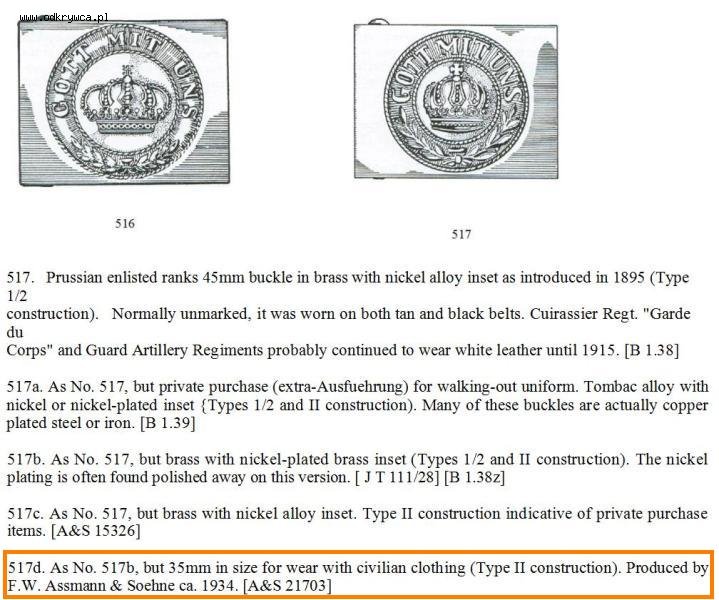 euro_sabre Napisano 11 Wrzesień 2009 Autor Napisano 11 Wrzesień 2009 hmm, ale ta wzmianka którą wkleiłem (fragment z katalagu German Belt Buckles 1845-1945" Peter'a Nash'a) nie daje mi spokoju, chodzi głównie o ten wymiar 35mm - bardzo podobny do szerokości mojej sprzączki - a z tego co rozumiem, opisują ją jako wersja do noszenia z cywilnym ubraniem - jednak skatalogowana... pokręcone to trochę...