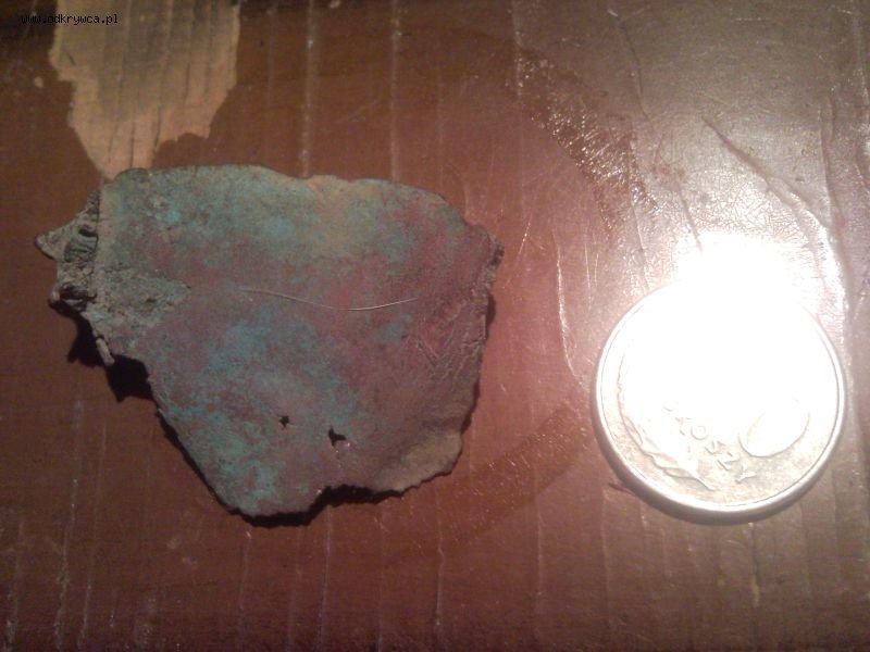 tą blaszke znalazłem na hipotetycznym miejscu w którym stała stara osada, czy pochodzi ona z przedmiotów codziennego użytku (naczynie?), i jak coś z jakiego okresu. Z jednej strony jest chropowata a druga gładka co wskazywało by ,że przeszła przez pożar.