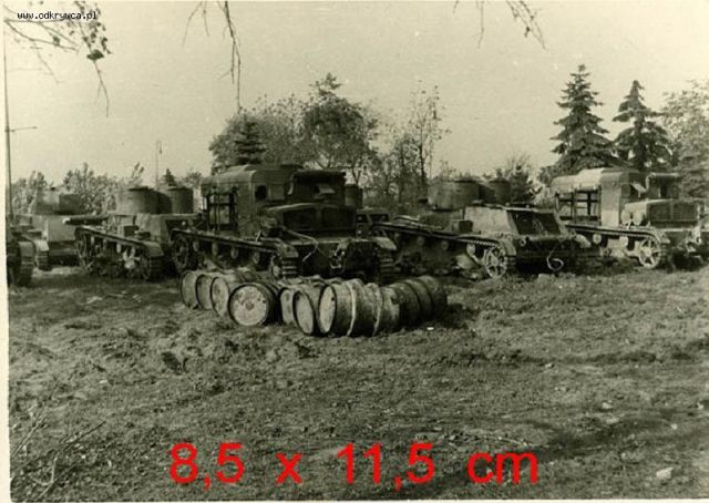MarekA Napisano 6 Maj 2010 Napisano 6 Maj 2010 Dowodem, że relacje nie wyjaśniają wszystkiego, jest powyższe zdjęcie. Tankietki na nim mogą pochodzić z kompanii sformowanej dla obrony Warszawy 3 września przez CWBPanc. Wg Magnuskiego po 3 zestawy do przezbrojenia tankietek w nkm 20mm otrzymały 6, 7, 12 batalion pancerny i właśnie CWBPanc. Jeśli tak było, to zdjęcie świadczyło by o tym, że ta kompania posiadała 2 (3?) tak uzbrojone pojazdy. Nie można też wykluczyć, że w/w bataliony też nie wystawiły szwadronów tankietek z pojazdami uzbrojonymi w nkm.