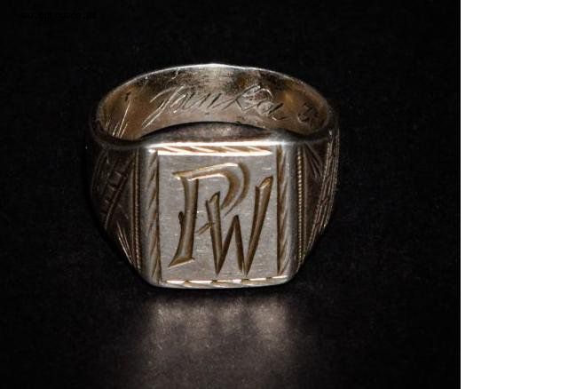 Sygnet ma inicjały PW" oraz wewnetrzny grawerunek Od Janka 30/XI.41."