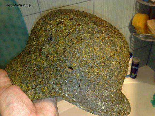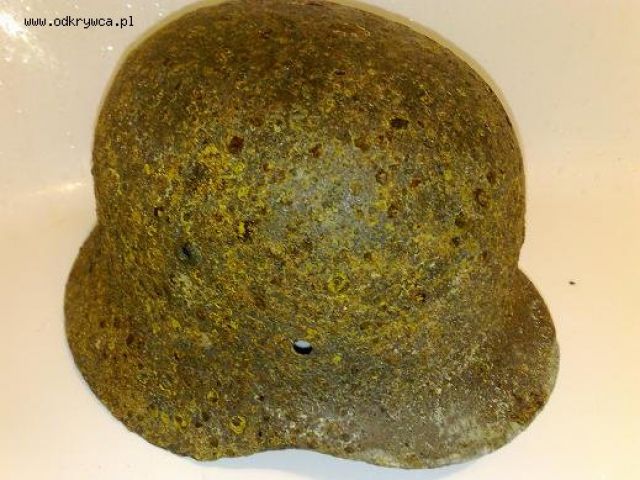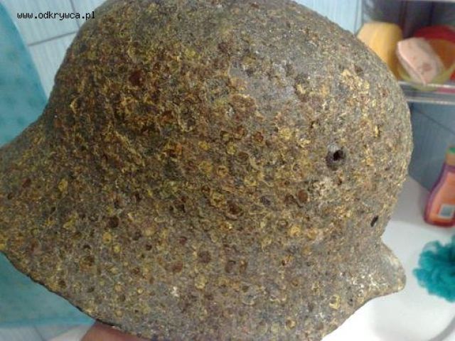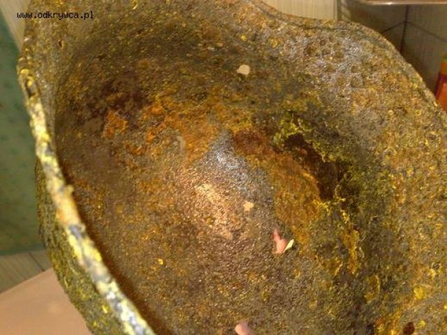 timki74 Napisano 27 Marzec 2010 Autor Napisano 27 Marzec 2010 Teraz konkrety...krzyż moczony trzy dni,zero rdzy,super...Klamra moczona pięć dni,dużo oryginalnej farby,ale ciut rdzy zostało...Hełm..ech moczył się około tygodnia,doglądany,wyjmowany i przemywany woda(zero kalki niestety),lecz jak widać na zdjęciu rdza w środku została i OTO MOJE PYTANIE-Jak się jej pozbyć bo elektroliza odpada,za dużo farby,a najgorsze jest to że jak chciałem odłupać rdzę z środka hełmu,to odpada z kawałkiem hełmu!!!Zrobiłem tak już dwie dziury i nie wiem co robić?Zostawić tak i WD 40 np...?