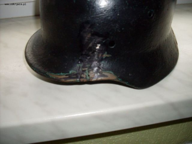 marv Napisano 4 Maj 2010 Autor Napisano 4 Maj 2010 Hełm to wykopek z pod Wrocławia,zachował się w tak dobrym stanie dlatego że w dole było ich więcej i były układane warstwowo.A z tego co mówił mi poprzedni właściciel to on własnoręcznie hałer pospawał( właściwie to nie spawał a zeszlifował spawane miejsce) Podobno pod koniec wojny jak przyszedł kryzys niemiaszki zbierali z frontu hełmy, na przestrzelone miejsce kładli markę i spawali do kupy.Jeśli się mylę poprawcie mnie.A czarny kamuflaż to jak najbardziej współczesne dzieło.