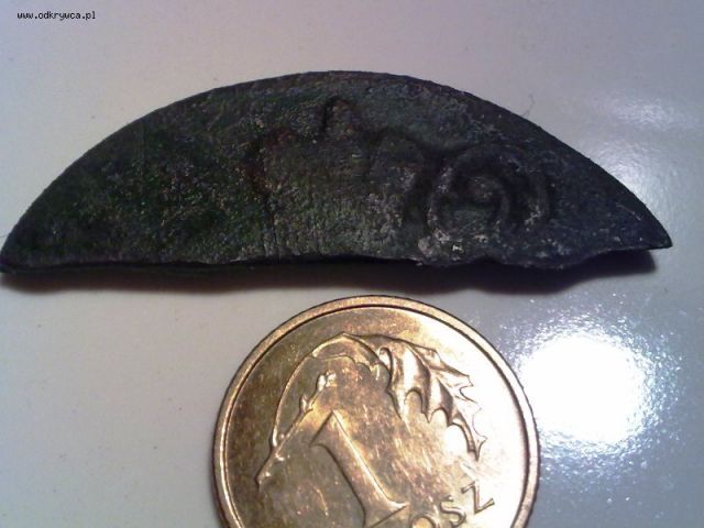 motylanoga Napisano 25 Kwiecień 2010 Autor Napisano 25 Kwiecień 2010 WitamProszę o jakiekolwiek info na temat tego fragmentu monety z widoczną cyfrą -2-. Jeżeli jest to moneta, to przed podziałem mogła mieć około 40 mm średnicy, jej grubość to 2 mm. Materiał najprawdopodobniej miedź. Co ciekawe, rant z nacięciami ukośnymi. PozdrawiamG.