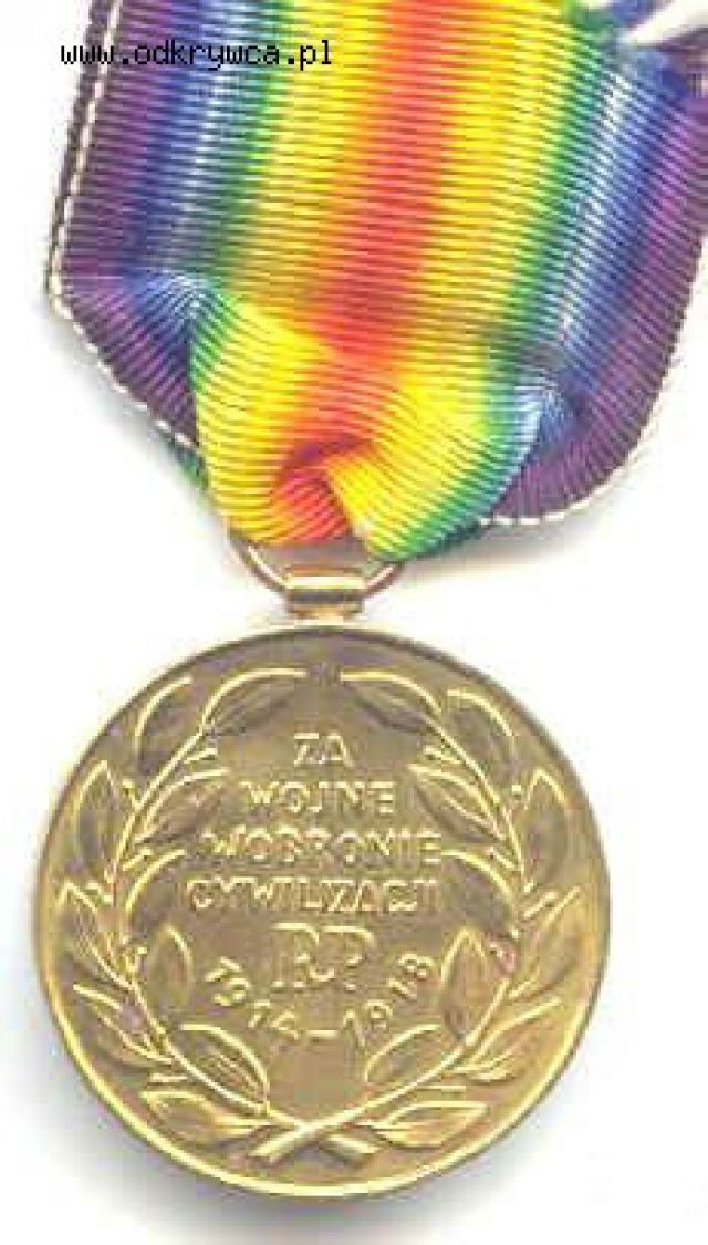 muiron Napisano 26 Kwiecień 2010 Napisano 26 Kwiecień 2010 I wersja trzecia: Bez orła ale z Inicjałami RP.Bite były w słowackiej mennicy w Kremnicy (punca na medalu MK), ilość egzemplarzy nieznana, wersja polska odznaczenia jest niezmiernie rzadka.Francuski Medal Zwycięstwa, nadawany był osobom (także cywilom), które walczyły - brały udział w walkach 1914-1918 przez przynajmniej trzy miesiące. Polakom nadawała je po wojnie specjalna między-aliancka komisja odznaczeniowa obradująca w Warszawie. Pomysłodawcą odznaczenia był marszałek Foch.Wiele z tych odznaczeń widać na zdjęciach 14 pułku ułanów, oraz 1 pułku Krechowieckiego i czasem 9 pułku ułanów Małopolskich. Ponieważ odznaczenia te otrzymali tylko ułani późniejszego 14 pułku, oznaczać to będzie, że ten czy inny oficer 1 pu lub 9 pułku miał rodowód jazłowiecki. Nie można wykluczyć też dekorowania tym medalem także innych żołnierzy polskich ale nie jest mi taki fakt znany.