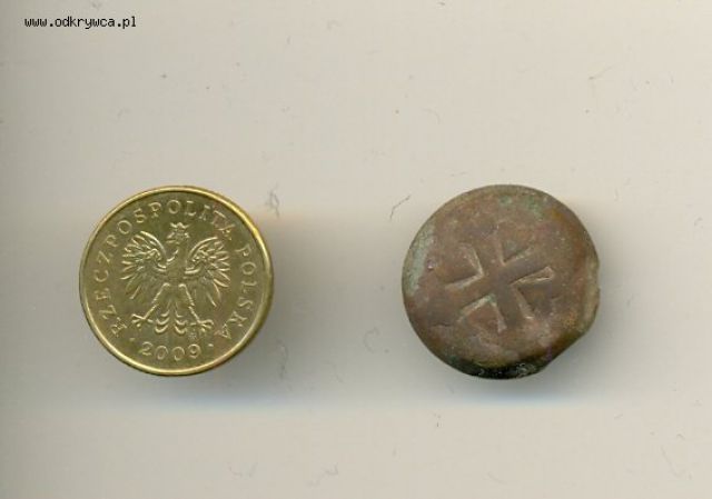rosyan Napisano 29 Maj 2010 Autor Napisano 29 Maj 2010 witam wyskoczył mi taki guzik (guz) bez sygnatur, wygląda mi na kościelny ? lub krzyżacki ? proszę o identyfikację