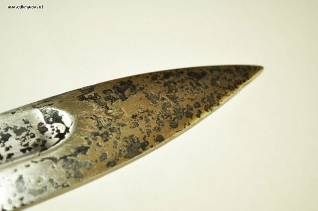PawelFB Napisano 19 Czerwiec 2010 Autor Napisano 19 Czerwiec 2010 Witam, Posiadam taki oto bagnet wz. 29. Na głowni są dziwne czarne plamy (nie są to wżery tylko plamy na powierzchni metalu) schodzą szczotką ale bardzo bardzo ciężko i bardzo rysuje się przy tym głownia, moje pytanie czy spotkaliście się już z czymś takim no i jak to usunąć ? Na rękojeści w okolicach zatrzasku jest również taki brzydki bardzo ciemny metal jak się go pozbyć ? Oraz jak doczyścić resztę ze zdjęć. Pozdrawiam, Paweł