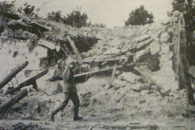 wachmistrz Napisano 11 Marzec 2004 Napisano 11 Marzec 2004 Na tej fotce jest wartownia nr 3. Po lewej widoczna kabina bojowa północna", w której było wejście do wartowni (w tym wysuniętym betonowym elemencie kabiny po lewej). Przez ten otwór w ścianie korytarza można się wsunąć do środka. Wartownia nr 3 znajdowała się pod willą podofcierską, po której nie ma dziś nawet fundamentów.
