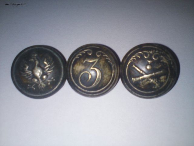 mario70 Napisano 5 Październik 2010 Autor Napisano 5 Październik 2010 witam, poproszę o pomoc kto i kiedy nosił te wypukłe guziki. napis wytwórni na rewersie:guzik z armatami - L. Minch. Warszawa. guziki z orłem i numerem - L.Minchheimer. Warszawa