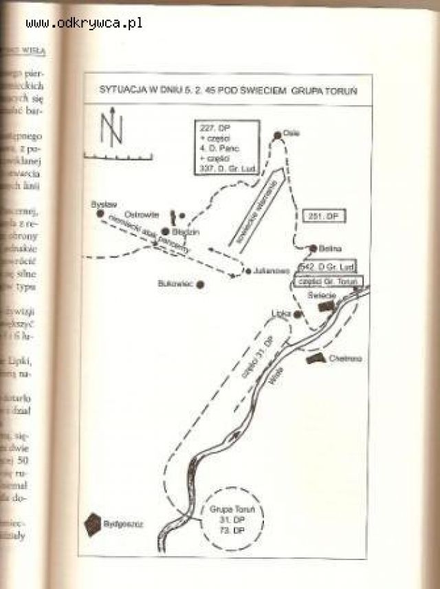 Kemet Napisano 14 Listopad 2010 Autor Napisano 14 Listopad 2010 Ja właśnie przeczytałem książkę pt. pantery nad Wisłą" Hansa Schauflera. Na stronie 42 autor podaje, że 7 lutego Grupę Toruń skierowano przez radio w stronę Lipki, położonej 3 kilometry na południe od Świecia, aby pod ochroną naszego ataku przebiła się do niemieckich linii obrony". Kto wie gdzie jest ta Lipka. Mieszkam niedaleko Świecia ale tej nazwy nie znam. Przepraszam za jakość zdjęcia, pierwszy raz dodawałem. Pozdrawiam