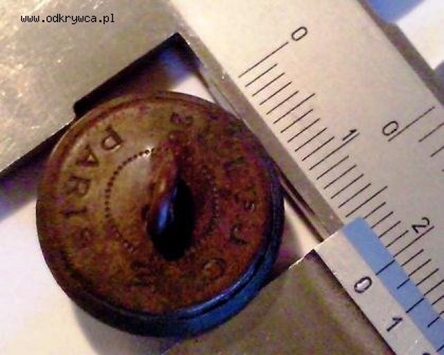 palenqe Napisano 9 Listopad 2010 Autor Napisano 9 Listopad 2010 Napisy PARIS 20 E TS (napisane jako indeks górny)J.C M. Czy może to być guzik od jakiegoś munduru? W tym rejonie podobno w 39 noc lub dwie stacjonowała jakaś grupa kawalerii.
