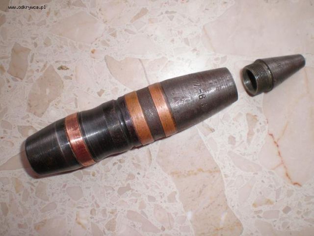 Ave Danzig Napisano 19 Grudzień 2010 Autor Napisano 19 Grudzień 2010 Witam, chciałbym odnowić taką skorupkę (oczywiście wydmuszka), jak widać górna część została wypolerowana przez poprzedniego właściciela ale już zdążyła pokryć się rdzawym nalotem. I tu kilka pytań do szanownych kolegów:- jak przygotować powierzchnię do oksydacji- jakiej oksydy lepiej urzyć (na zimno czy na gorąco) by uzyskać taki sam kolor jak na dolnej części- czy oksydowanie bedzie miało wpłym na barwę miedzianych pierścieni (ewentualnie czym je zabezpieczyć)Zapalnik był pokryty jakąś jasnoszarą oksydą lub farbą, tak jak wiele innych zap. do średniokalibrowej amunicji powojennej. Może ktoś będzie wiedział co to za środek ? Ale to już drugorzędna sprawa. Pzdr.AD