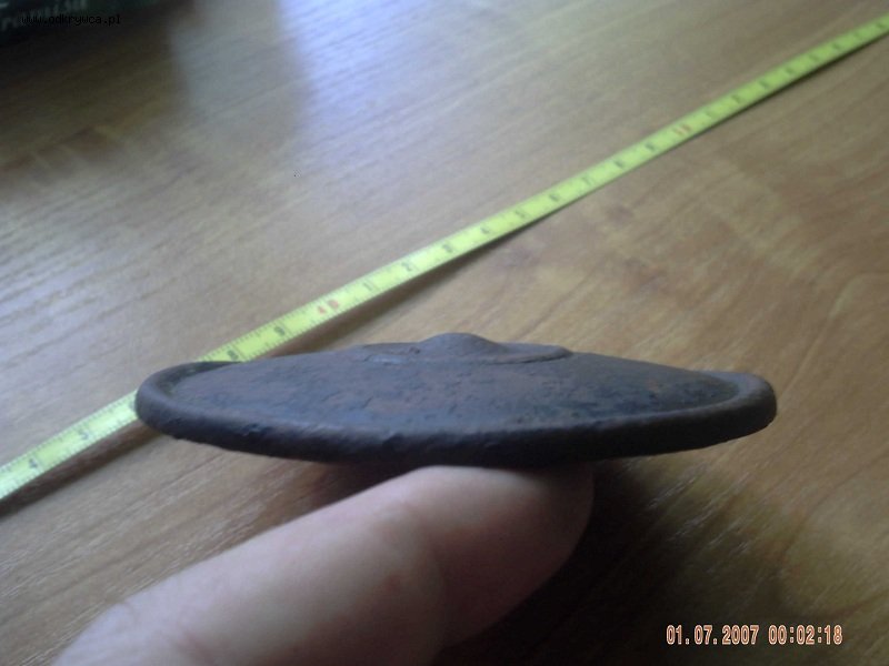 Mj Napisano 28 Czerwiec 2011 Autor Napisano 28 Czerwiec 2011 fot 2 rewers- wyraźnie widać 2 elementy, które zapewne służyły do zamocowania.
