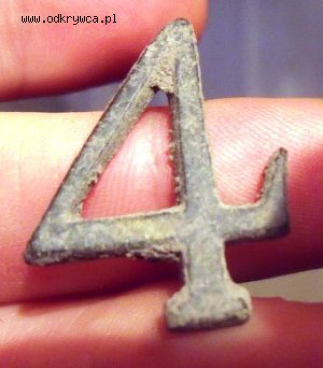 Wyro Napisano 13 Listopad 2011 Autor Napisano 13 Listopad 2011 Mój siostrzeniec w ramach podnoszenia mi emocji pokazał mi kolejny swój skarb. Znam kontekst więc nie mam wątpliwości, że jest to 1831 r., czwarty pułk piechoty liniowej. Z tym, że cyfry 4 z ładownicy były większe. Ta ma jedynie 3 cm. Jeden zaczep. Na zdjęciu wygląda to jakby był ułamany, ale nic bardziej mylnego. Jest cały, wystaje na jakieś 2 lub 3 minimetry i ma dziurkę na nić więc raczej nie była to cyfra mocowana do skóry ale raczej do materiału, ale to moje gdybania - być może nie wiele warte. W tym miejscu pokazały się też cynowe czwórki i oficerska w labrach z Królestwa Polskiego. No ale ta cyferka to już coś innego - tylko od czego była? Proszę grzecznie o ID.