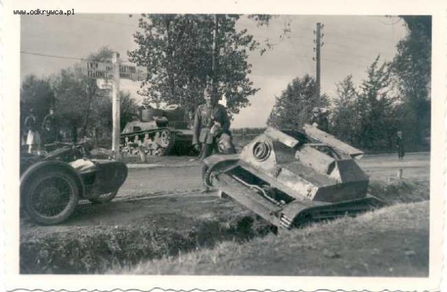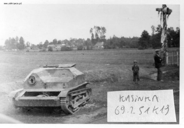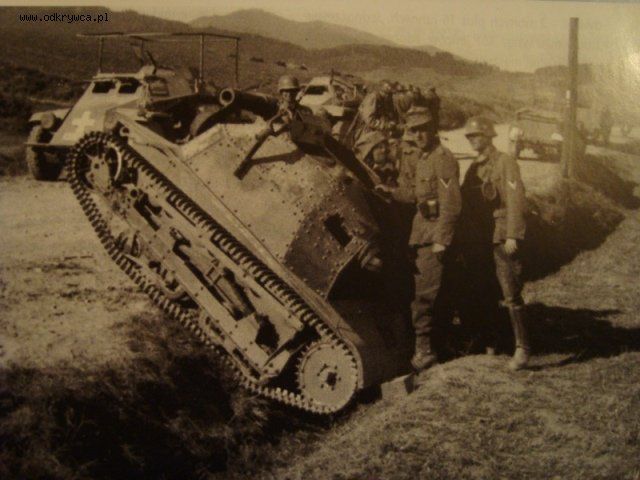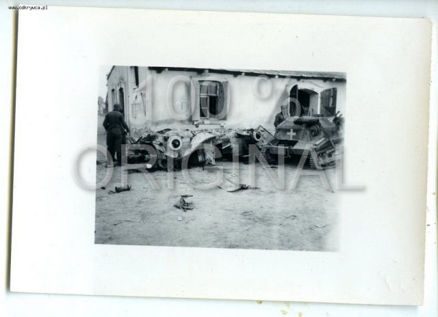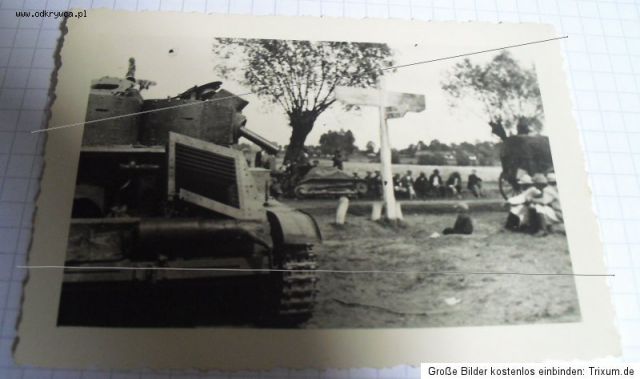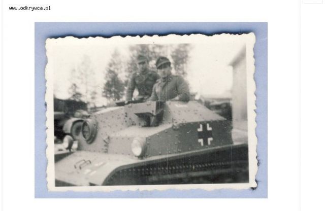 Mi.Der Napisano 10 Listopad 2012 Napisano 10 Listopad 2012 Nie chcę wrzucać kilku zdjęć, więc spróbuję opisać. Albo napisz na priv, to mogę podesłać zestawienie wszystkich mi znanych.Ja wiem tylko o dwóch tankietkach na drodze - druga w kolejności (widoczna w głębi na zdjęciu) to ta z zabitym czołgistą i m.in. rozoranym przez pocisk lewym błotnikiem. Później wylądowała w rowie ze zrzuconymi gąsienicami. Pierwsza to właśnie ta - z charakterystycznie rozbitą przez pocisk prawą pokrywą przekładni. Z analizy zdjęć wynika mi, że została później - nie wiem dlaczego - obrócona w lewo i zepchnięta z drogi, na kupę kamieni na poboczu.Jeśli masz jakąś inną trzecią, napisz. I która to jest ta w Nerze?