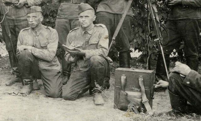 Edmundo Napisano 21 Listopad 2016 Napisano 21 Listopad 2016 Hej Panowie jako że lubuję się w wynajdywaniu wszelakich ciekawostek tyczących zwłaszcza kwestii mundurowych to proszę zwrócić uwagę na fotografię dodaną przez bodzia000000 w dniu2016-09-27 14:03:19. Moją uwagę przykuł siedzący żołnierz z lewej a właściwie to to co ma na łydkach czyli zdaje się getry (opinacze) US Army wzoru M 1904 a może późniejsze M 1917 które to najprawdopodobniej pochodziły z demobilu amerykańskiego dostarczanego do Polski w trakcie wojny polsko-bolszewickiej. Według mojej oceny na zdjęciach z epoki jest to bardzo rzadko występujący element umundurowania WP.