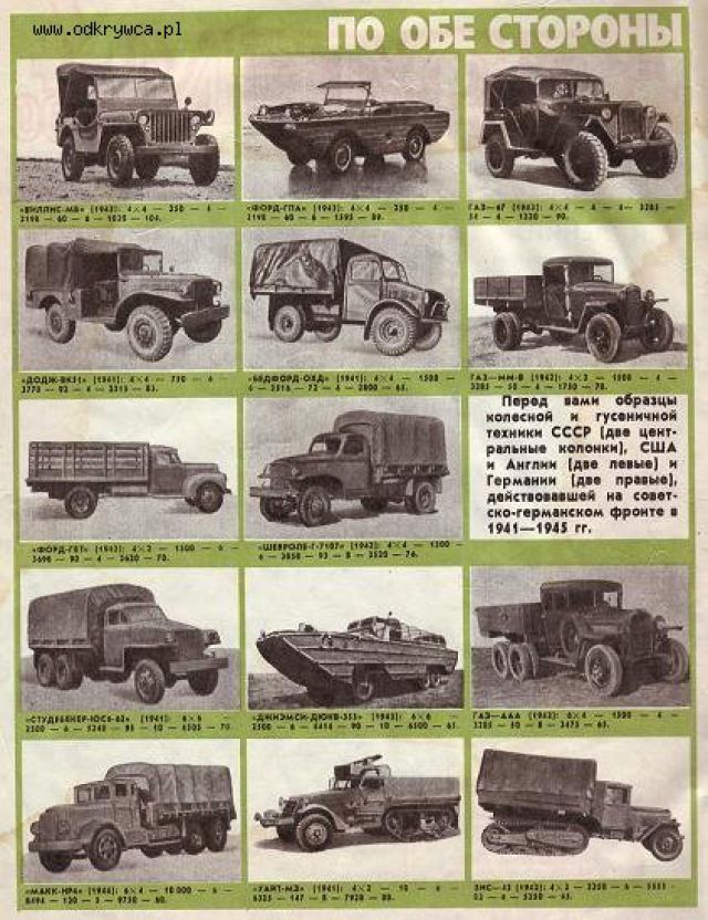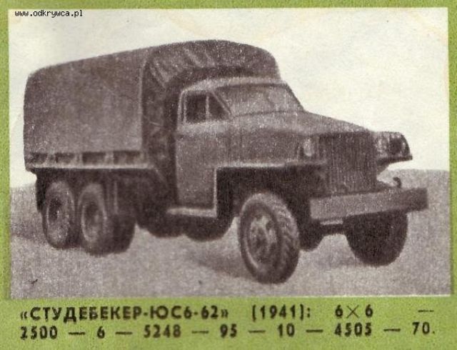 Dodge52 Napisano 11 Październik 2012 Napisano 11 Październik 2012 Witam,Dzisiaj kilkanaście zdjęć Studebakera US6 na froncie wschodnim które dotarły w ramach pomocy do CCCP drogą lądową i morską.W Tygodniku ,,Za ruliom,, - naszego odpowiednika - Tygodnika ,,Motor,, , jest artykuł Ł.Susławicza pt. ,,Po obu stronach frontu,, - jest przedstawiony samochód ciężarowy Studebaker US6. Można się z niego dowiedzieć, że były 2 montownie tych ciężarówek / amerykanie dostarczali pojazdy skompletowane w skrzyniach, tak jak Willysy /, pierwsza w fabryce Zis w Moskwie, druga po wyzwoleniu Mińska w 1944r. w dzisiejszej fabryce MAZ /Mińskij Awtomobilnyj Zawod/, złożono w tych fabrykach kilka tysięcy Studebakerów, przygotowując większość pod wyrzutnie rakietowe.Na stronie w/w Studebaker US6