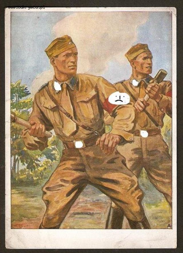 traper6 Napisano 16 Listopad 2012 Autor Napisano 16 Listopad 2012 Po 5 -u dniach zamknięto mi pozycję z żołnierzami SA. (10.5 euro i 12 obserwujących). Skan przedstawia fotę już z moją modyfikacją.Obie aukcje ze zmienionymi fotami już wiszą z powrotem. Na czerwono i drukowanymi literami wkleiłem adnotację tą co mi Gniewkos przetłumaczył.Niech się teraz odemnie odkopulują