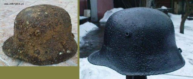 Hebda Napisano 24 Styczeń 2013 Napisano 24 Styczeń 2013 Węgier wz.17Opukanie młotkiem większych purchli->fosol->szczota druciana->elektroliza->tanina>B44->H80 z dodatkiem grafitu.:)