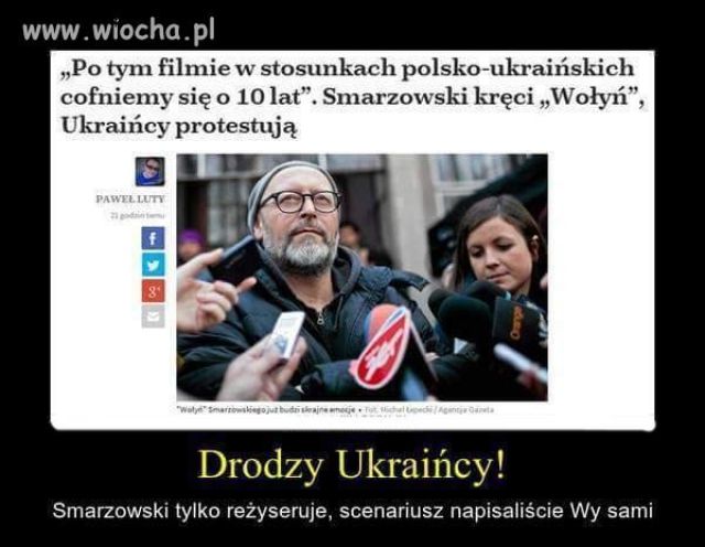 kindzal Napisano 7 Sierpień 2013 Napisano 7 Sierpień 2013 Wojciech Smarzowski przygotowuje kolejny projekt - historię, dla której tłem byłoby ludobójstwo na Kresach. Na razie napisałem treatment, zaraz wezmę się za scenariusz, ale do tego czy ten film powstanie czy nie, jeszcze długa droga" - mówił twórca Drogówki" w radiowej Jedynce- Nie zawężał bym tego tylko do Wołynia. To dość istotne dla mnie i dla Kresowiaków. Chciałbym, żeby film dotyczył całych Kresów. Akcja zaczynałaby się jeszcze przed wojną, a kończyła w 1943-44 roku. A nawet później, bo epilog to byłby już rok 1945, kiedy wypędzeni opuszczają Kresy – mówił w JedynceWojciech Smarzowski.- To nie będzie czarno-biała historia. Rozdzielam Banderowców od Ukraińców. Będzie tam również o akcjach odwetowych Polaków. Ten film będzie uwierał. Przede mną też dość duże wyzwanie - jak pokazać, żeby nie pokazać, bo to są okropne rzeczy, które się tam wydarzyły - zapowiada znany reżyser.Twórcę Domu złego" zainspirowały archiwalne, czarno-białezdjęcia, które znalazł w sieci. - Jak wpiszemy w internecie hasło zeź wołyńska" czy ludobójstwo na Kresach" zawsze wyskakują nam te same zdjęcia. Chciałbym kilka z nich ożywić, to znaczy zrobić wokół nich sceny, odnieść się do konkretu - mówił Smarzowski, który początkowo chciał zaprosić do współpracy ukraińskiego reżysera i oddać mu połowę filmu. -Dla idei byłoby to bardzo fajne. Dla filmu też, ale pod warunkiem, że po stronie ukraińskiej byłby odpowiedni reżyser. Jeżdżę po różnych festiwalach i gdyby był jakiś dobry reżyser z Ukrainy, to bym go znał - stwierdził.Wojciech Smarzowski (rocznik 1963) to jeden z najbardziej cenionych polskich reżyserów filmowych i teatralnych, wielokrotnie nagradzany twórca Wesela", Domu złego", Róży" i Drogówki". Właśnie kończy pracę nad filmem Pod Mocnym Aniołem" na podstawie powieści Jerzego Pilcha.http://www.kresy.pl/wydarzenia,ukraina?zobacz/wojciech-smarzowski-nakreci-film-o-rzezi-wolynskiej