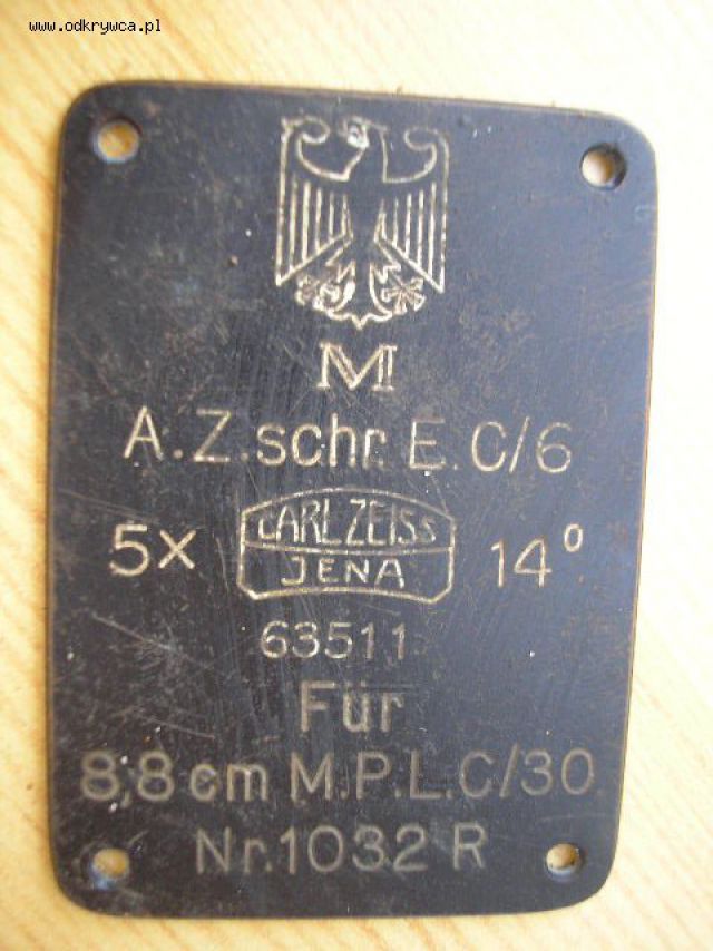 Kopacz1 Napisano 4 Maj 2014 Autor Napisano 4 Maj 2014 mosiężna tabliczka znamionowa od optyki działa Reichsmarine 8,8 cm M.P.L. C/30