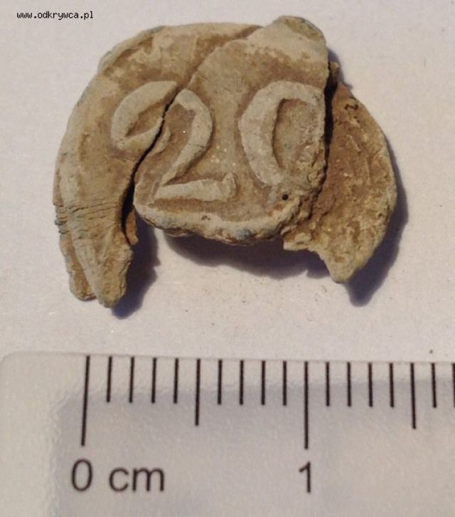 bryła Napisano 6 Marzec 2015 Autor Napisano 6 Marzec 2015 Plomba ołowiana - dwuczęściowapo jednej stronie 20 (z fikuśną 2)po drugiej stronie chyba 11/4 ?