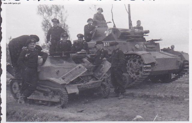 atrix Napisano 4 Sierpień 2015 Napisano 4 Sierpień 2015 lipsko nad WisłąOdszukałem to zdjęcie. jak się okazuje TKS jeszcze się tli.W tym TKS poległ kpt.Karol Czechowski ( WBP-M)W większości opracowania historyczne podają że pod Lipskiem poległ kpt Antoni Czechowicz. Co jest nieprawdą. Kpt. A.Czechowicz nigdy nie był w WBP-M, zmarł w Londynie.Pomyłka wynikła z podobieństw nazwiska obu oficerów.