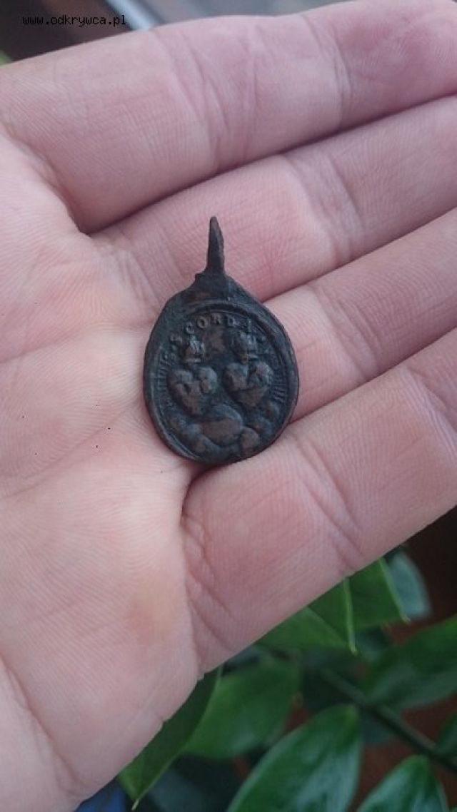 borsia Napisano 12 Styczeń 2016 Napisano 12 Styczeń 2016 Matka Boska Częstochowska oraz sursum corda (w górę serca). Matka Boska ma koronę, zatem medalik powstał po roku 1717, czyli po koronacji obrazu. Na XIX wiek nie wygląda ;) Zatem nieco zawężone.