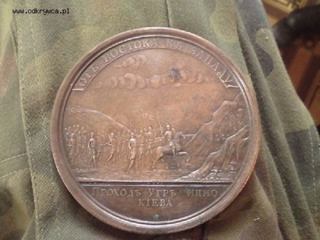 honker Napisano 19 Styczeń 2016 Napisano 19 Styczeń 2016 cześć dokładnej ID ci nie podam ale mogę przetłumaczyć.1 foto po łuku to od wschodu do zachodu,pod spodem przemarsz ugr" obok Kijowa.druga strona to wielki książę Igor północnej i południowej Rosji. prawdopodobnie upamiętnia jakieś historyczne wydarzenie z historii Rosji ale kiedy i jakie? krój liter sugeruje że wykonany przed reformą pisma ok.1915r pozd. marek