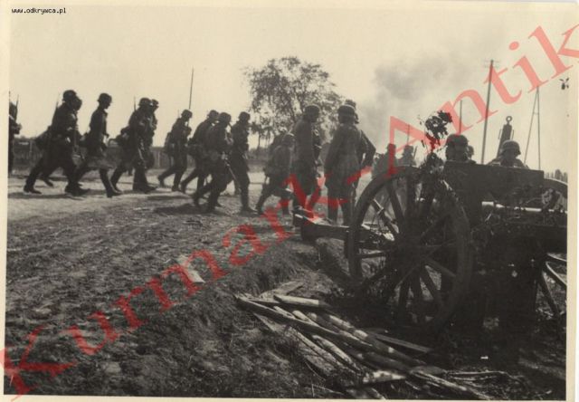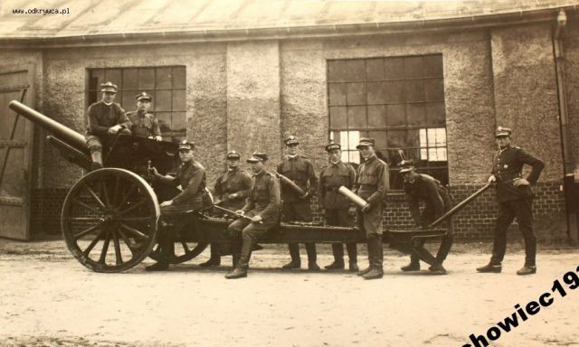 Edmundo Napisano 21 Maj 2016 Napisano 21 Maj 2016 Do bodzia000000 a także wszystkich zainteresowanych. Zdjęcie dodane przez Ciebie w dniu 2016-05-20 10:17:45 to na pewno Łomża a dokładnie ówczesny i obecny Plac Tadeusza Kościuszki. Niestety do czasów współczesnych nie przetrwało nic z widocznej na fotografii zabudowy a i sam wygląd czy też kształt placu uległ kolosalnej zmianie. Co do widocznej na fotografii armaty wz. 02 czyli prawosławnej" to bardzo możliwe iż jest to jedna z armat należących do dwóch plutonów artylerii pozycyjnej typu II nr 15 i nr 16 które według planu mobilizował 33 Łomżyński Pułk Piechoty a które to najprawdopodobniej miały stanowić bezpośrednie wsparcie ogniowe obsady fortów w Piątnicy czyli I baonu 33 pp. Czy plutony zostały zmobilizowane do czasu rozpoczęcia walk o Łomżę (7 września) czy też do czasu wycofania się oddziałów polskich z Łomży (godziny ranne 11 września) tego niestety nie wiem, natomiast można przyjąć iż nie jest to armata należąca do etatowego plutonu artylerii piechoty wchodzącego w skład 33 pp gdyż tenże pluton zajmował pozycje w okolicach Pniewa. Dodatkowo za hipotezą że armata stanowiła uzbrojenie plutonu artylerii pozycyjnej przemawia fakt braku przodka a jak wiadomo plutony tego typu były pozbawione środków transportu a także przodków czy też jaszczy. A rozwijając moją hipotezę to działo jest skierowane w stronę ulicy Zjazd i mostu na Narwi czyli w kierunku Piątnicy (forty I, II i III) skąd w godzinach rannych 11 września wycofał się I baon 33 pp czyli jego zadaniem mogło być wsparcie ogniem bezpośrednim opuszczających pozycje pododdziałów polskich. To tyle względem fotografii z Łomży.