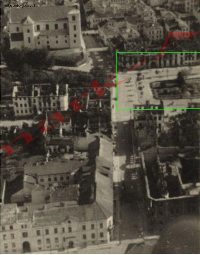 leszek01 Napisano 21 Maj 2016 Napisano 21 Maj 2016 Plac Tadeusza Kościuszki (zaznaczony na zielono) na fotografii lotniczej.Edmundo napisał ... rozwijając moją hipotezę to działo jest skierowane w stronę ulicy Zjazd i mostu na Narwi czyli w kierunku Piątnicy (forty I, II i III) skąd w godzinach rannych 11 września wycofał się I baon 33 pp czyli jego zadaniem mogło być wsparcie ogniem bezpośrednim opuszczających pozycje pododdziałów polskich." Prawosławna znakomicie wzmacniała siłę ognia schronu ryglującego drogę na most( wybudowany na zakręcie ulicy Zjazd na terenie dawnych zakładów mięsnych).