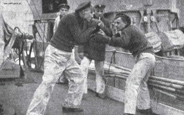 formoza58 Napisano 18 Czerwiec 2017 Autor Napisano 18 Czerwiec 2017 Marynarze z Wichra" podczas postoju okrętu w Narwie.