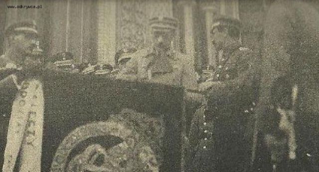 formoza58 Napisano 28 Listopad 2016 Napisano 28 Listopad 2016 Z uroczystości poświęcenia i wręczenia pierwszego sztandaru pułkowi na schodach Cerkwi na placu Saskim w warszawie, w 1919 roku...Mecenas Osuchowski przemawia w imieniu Komitetu Obrony Lwowa.