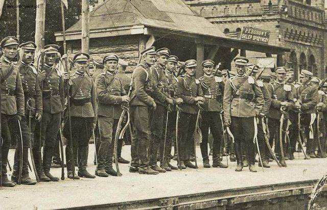 formoza58 Napisano 19 Listopad 2016 Autor Napisano 19 Listopad 2016 Szwadron honorowy pułku w oczekiwaniu na przybycie gen. Lisowskiego. Peron dworca kolejowego w Brześciu, 1919 rok.
