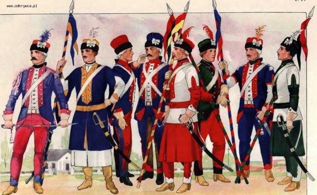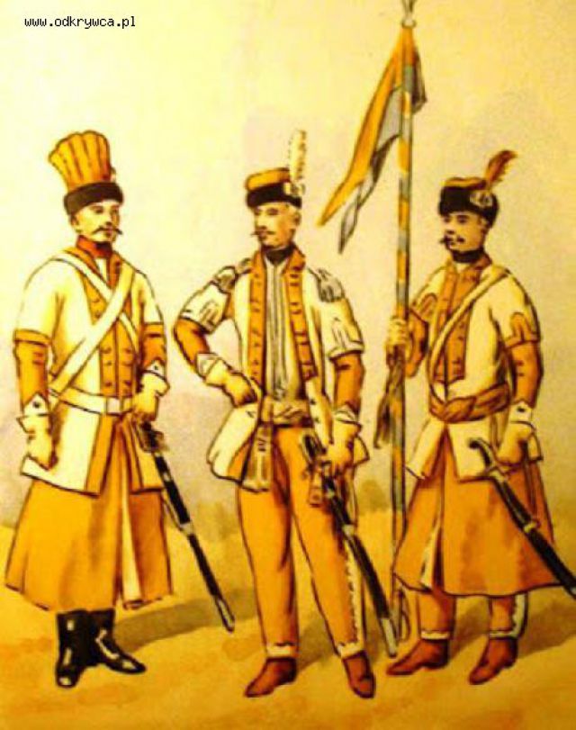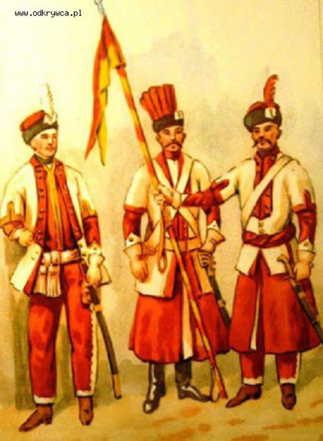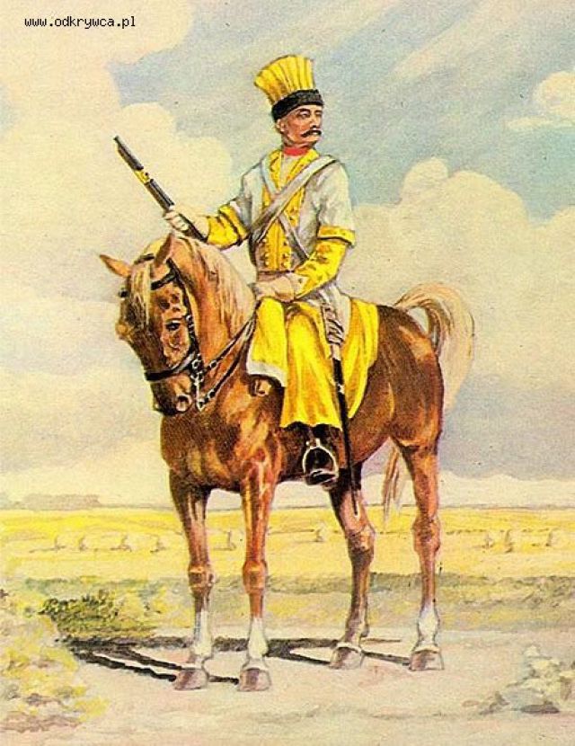 formoza58 Napisano 13 Wrzesień 2018 Autor Napisano 13 Wrzesień 2018 W marcu 1777 roku istniało 5 Pułków Straży Przedniej:- 1-szy płk. Baranowskiego- 2- i Buławy Wielkiej- 3- i Buławy Polnej- 4- y płk. Bielaka- 5- y Ignacego PoniatowskiegoRazem 1360 ludzi.Reformy Sejmu Czteroletniego zakładały zwiększenie ludzi w pięciu pułkach do 5490, po 1098 w pułkach o strukturze: sztab plus 8 chorągwi po 135 koni. Wkrótce jednak zmieniono stany do 812 dla 1 pułku i po 612 dla pozostałych.W czerwcu 1792 roku sformowano 7 Pułk Straży Przedniej Aleksandra Ułana, natomiast w lipcu tego roku Nadworny Pułk Królewski Jakuba Azulewicza ( na zdjęciu) zostal włączony do wojsk Wielkiego Księstwa Litewskiego jako 6 Pułk Straży Przedniej.