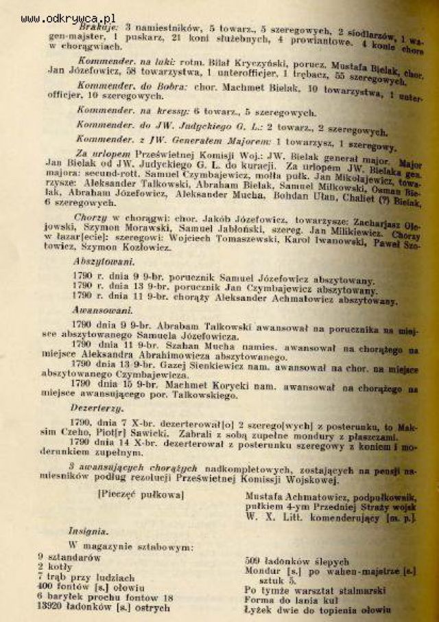 formoza58 Napisano 12 Wrzesień 2018 Autor Napisano 12 Wrzesień 2018 Trochę ciekawych materiałów w temacie Tatarskich Pułków Straży Przedniej.Na początek raport z 1791 roku, przedstawiający stan i kondycję 4 Pułku Straży Przedniej...