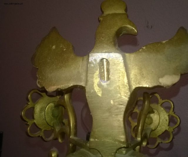 Będąc u znajomego zauważyłem nietypowy kinkiet. Orzeł wygląda jak z Księstwa Warszawskiego. Kinkiet jest ciężki, kinkiet został przerobiony ponieważ ma oświetlenie. Może ktoś coś więcej wie na temat tego kinkietu.