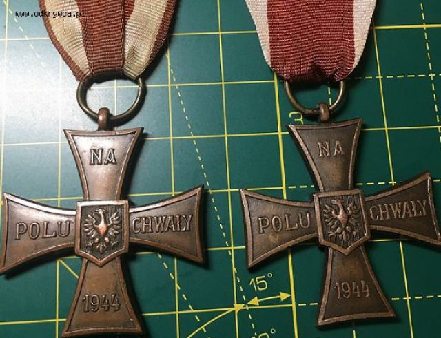 kosowski85 Napisano 22 Kwiecień 2017 Autor Napisano 22 Kwiecień 2017 Witam,Ktory z tych Krzyzy jest Moskiewskiej produkcji (Krogulec L3) a ktory kopia z 1980 (L23)? Czy myle sie myslac ze ten ciemniejszy (po prawej stronie) jest Moskiewski? Detale sa wyrazniejsze na tym po lewej stronie ktory mi sie wydaje jest odlewem piaskowym?Dziekuje za pomoc.