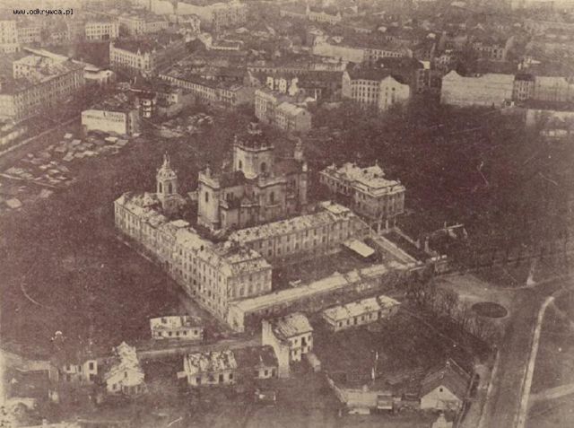 formoza58 Napisano 2 Styczeń 2018 Autor Napisano 2 Styczeń 2018 Tutaj również Warszawa, tyle, że robione przez Niemców 28 września 1939 roku.Przedstawia ulicę Powązkowską z wiaduktem kolejowym przy ulicy Duchnickiej i z widocznym dzisiejszym Instytutem Mechaniki Precyzyjnej ( w dolnym lewym rogu).Za kompleksem Starych Powązek widoczne budynki szkoły na Spokojnej i fabryki Cygana na Kolskiej. Za polem szkoła św. Kingi.