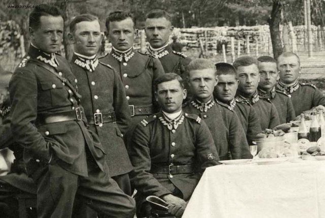 Edmundo Napisano 23 Sierpień 2017 Napisano 23 Sierpień 2017 Kolejna ciekawa rzecz, mianowicie na fotografii A tak biesiadowali Ułani Grodzieńscy 23 Pułku..." z 2017-08-22 23:59:20 widać szeregowców w kurtkach wz. 19, bluzach letnich wz. 24 co świadczy o tym iż fotografię wykonano umownie" po tymże roku oraz dwóch żołnierzy w kurtkach z bodajże brytyjskiego czy też amerykańskiego demobilu powszechnie noszonych w czasie wojny polsko-bolszewickiej a nie często widocznych na fotografiach z połowy lat dwudziestych.
