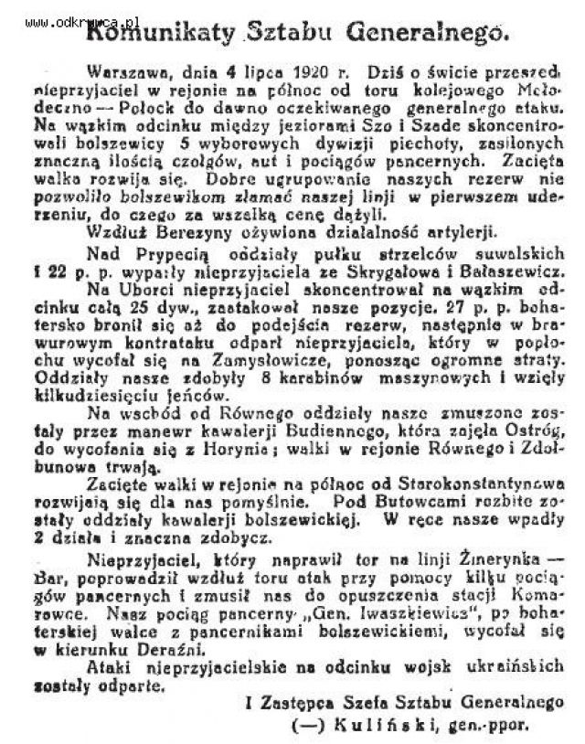 formoza58 Napisano 21 Sierpień 2017 Autor Napisano 21 Sierpień 2017 PP Piłsudczyk", z komunikatów wojennych z 1920 roku...