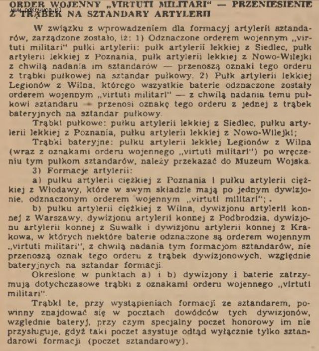 Koloman Napisano 29 Październik 2017 Napisano 29 Październik 2017 Dla ścisłości należałoby wspomnieć, że na święcie 1.DP Legionow w sierpniu 1939 pułk występował pod kolejny raz zmienioną nazwą.Zgodnie z rozkazem gen. dyw. Tadeusza Kasprzyckiego, ministra SW z 18.02.1938 pułkowi nadano nazwę Pułk Artylerii Lekkiej Legionów Józefa Piłsudskiego".