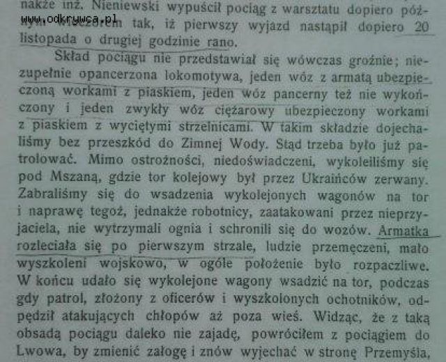 Krzysztof115 Napisano 11 Maj 2018 Napisano 11 Maj 2018 Zwróciłem uwagę na datę umieszczoną pod opisem producenta pociągu. Czy oznacza on datę oddania tego pociągu do służby? Tak,uroczyste poświęcenie nastąpiło dopiero 15 września 1920 r.Pociąg pancerny Stefek" został skierowany do Łodzi w celu obsadzenia go wyszkoloną załogą. Pierwotny skład Lwowianina" tak wyglądał, jak w tym opisie.