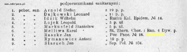 formoza58 Napisano 3 Grudzień 2017 Autor Napisano 3 Grudzień 2017 Ponadto z DZ.P nr.7 z 28.II.1920:Mianowani:- do stopnia por. piech, podporucznik Olgierd Niebieszczański z PP. Pionier"- do stopnia porucznika artylerii, podporucznik Henryk Amrogowicz z PP. Piłsudczyk Szeroki"- do stopnia porucznika wojsk technicznych, podporucznik Zdzisław Macherski z PP. Kaniów.Na podstawie dekretu L.1940 z 14.II.1920, z dniem 1.II.1920 do stopnia podporucznika piechoty, podoficer Legionów Polskich Roman Różycki z PP. Smok".Na mocy dekretu L.1922 z 14.II.1920, powołany został do służby w PP 19, ppor. piech. Adam Aleksandrowicz.