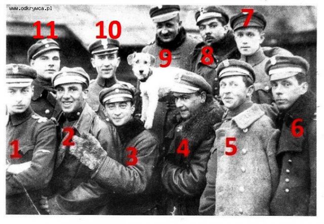 Koloman Napisano 13 Marzec 2018 Napisano 13 Marzec 2018 Nie może także zabraknąć na forum lotników lwowskich - już pierwsze ich fotografie zostaly zamieszczone - czas na dalszeTo oni jako pierwsi stanęli do walki o Niepodleglość i Obronę Granic Polski. Przez wiele lat byli całkowicie zapomniani i usuwani w cień. Warto wspomnieć, ze w wydanej w latach 80-tych encyklopedii lotników polskich nie zamieszczono biogramu ANI JEDNEGO lotnika lwowskiego.Olano" Bastyra, Florera, Steca i wielu innych. Na fotografii z przełomu 1918/19 roku widnieją lotnicy z 6.Eskadry:1 - Jerzy Wojciechowski2 - Ryszard Hesse3 - Kazimierz Schmidt (Gaszyn) - zestrzelił 4 rosyjskie samoloty. M.in.dowódca 6.Eskadry4 - Eugeniusz Roland - późniejszy dyrektor PLL LOT5 - Rudolf Wayde6 - Stanisław Pietruski - stryj znanego aktora7 - Tadeusz Kominkowski8 - Tadeusz Wereszczyński - późniejszy dowódca 2.Pułku Lotniczego9 - NN 10- inż.Tadeusz Florjański 11- NNImię psa Eugeniusza Rolanda - NN