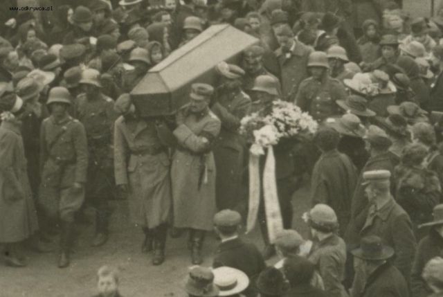 formoza58 Napisano 13 Maj 2018 Autor Napisano 13 Maj 2018 Z pogrzebu poległych pod Wołczuchami.Trumna ze szczątkami por. Wudkiewicza niesiona z wagonu na lawetę...