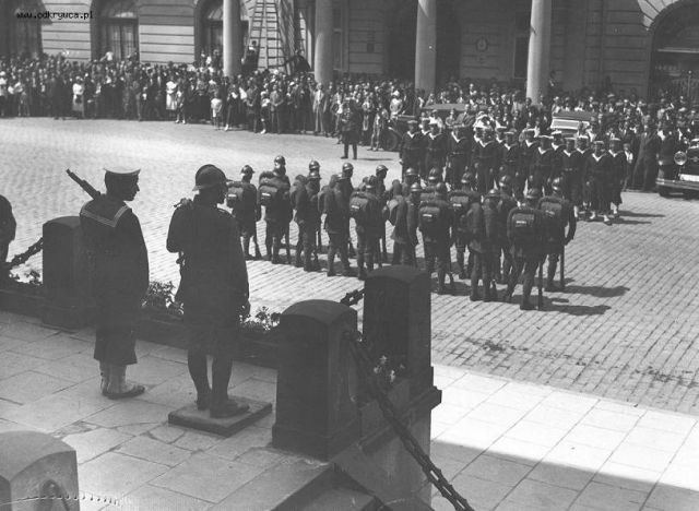formoza58 Napisano 18 Październik 2018 Autor Napisano 18 Październik 2018 Ostatnie zdjęcie pochodzi chyba z 18 marca, kiedy w przeddzień imienin JP, odbywały się uroczyste capstrzyki. Przemawia za tym obecność pododdziału piechoty prawdopodobnie z orkiestrą, stojącego frontem do warty w miejscu, gdzie ustawiały się plutony zdające.